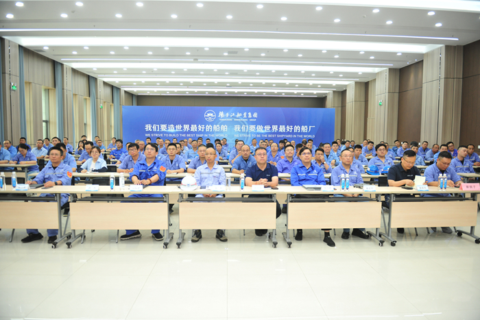 6月25日下午,揚(yáng)子江船業(yè)集團(tuán)內(nèi)訓(xùn)師半年度總結(jié)暨第三期內(nèi)訓(xùn)師(智改數(shù)轉(zhuǎn)專項(xiàng))項(xiàng)目啟動(dòng)儀式在集團(tuán)行政大樓多功能廳成功舉行。新?lián)P子造船副總經(jīng)理倪榮、新?lián)P子造船副總經(jīng)理兼集團(tuán)綜合管理部部長茆宏兆、揚(yáng)子鑫福副總經(jīng)理劉銀君、揚(yáng)子三井造船總經(jīng)理助理兼揚(yáng)子三井綜合管理部部長楊立峰等領(lǐng)導(dǎo)嘉賓出席,各子公司生產(chǎn)、技術(shù)條線部長、內(nèi)訓(xùn)師團(tuán)隊(duì)骨干成員以及安全兼職講師等120余人參加會(huì)議。