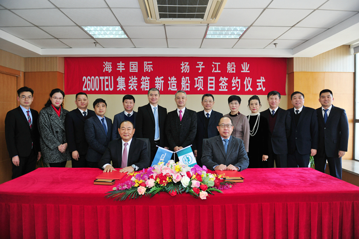 我集團與海豐國際本年度第三次合作,12月19日,雙方共同簽署6+2+2艘2600TEU集裝箱新造船建造合同。集團董事長任樂天先生,集團副總經(jīng)理杜成忠先生、張濤先生,海豐國際董事局副主席兼首席執(zhí)行官楊現(xiàn)祥先生攜夫人,海豐航運集團副總裁肖森元先生,上海海事大學(xué)校長陸靖先生,上海海事大學(xué)商船學(xué)院黨委書記曹紅奮女士,上海海事大學(xué)商船學(xué)院院長肖英杰先生,上海船舶研究設(shè)計院院長呂智勇先生等共同見證新訂單成功簽約。