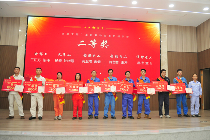 集團(tuán)副總經(jīng)理兼新?lián)P子造船總經(jīng)理杜成忠作總結(jié)講話。他表示,在為期5個(gè)月的競賽中,各子公司黨支部、工會(huì)、承辦車間部門通力協(xié)作,科學(xué)確定競賽項(xiàng)目,培訓(xùn)中心協(xié)調(diào)安排預(yù)選賽和決賽各比賽日程,整個(gè)大賽在嚴(yán)謹(jǐn)?shù)膶?shí)施過程中體現(xiàn)出了公平、合理、務(wù)實(shí)的特點(diǎn)。為確保比賽高標(biāo)準(zhǔn)、高效率、高質(zhì)量舉辦,各協(xié)作部門從上到下做了大量細(xì)致的工作,參賽選手全力以赴、認(rèn)真對待,充分發(fā)揮了技術(shù)水平,為自己爭得了榮譽(yù),為集體增添了光彩。他強(qiáng)調(diào),公司目前正在緊鑼密鼓地推進(jìn)產(chǎn)能升級(jí)和產(chǎn)業(yè)高質(zhì)量發(fā)展。更加高端和精益的生產(chǎn)需要更創(chuàng)新和嚴(yán)謹(jǐn)?shù)漠a(chǎn)業(yè)工人隊(duì)伍,公司一直高度重視技能人才培育工作,把辦好勞動(dòng)技能競賽作為選拔培養(yǎng)人才的重要抓手,為廣大職工搭建展示技能、提升素質(zhì)、成長成才的廣闊舞臺(tái)。