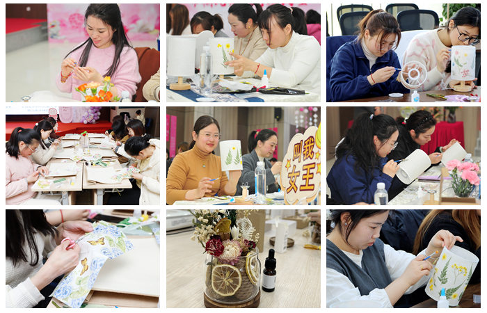 巧手匠心,創(chuàng)意無限。女職工們在專業(yè)老師的指導下,親手制作了精美的古法壓花臺燈、蝶古巴特手工包和植物香薰。大家充分發(fā)揮創(chuàng)意,制作出獨一無二的作品。手工制作不僅讓大家體驗到了動手的樂趣,也增進了同事之間的交流與互動?;顒咏Y束后,大家拿著自己親手制作的作品,臉上洋溢著滿足的笑容。